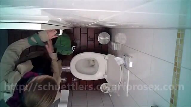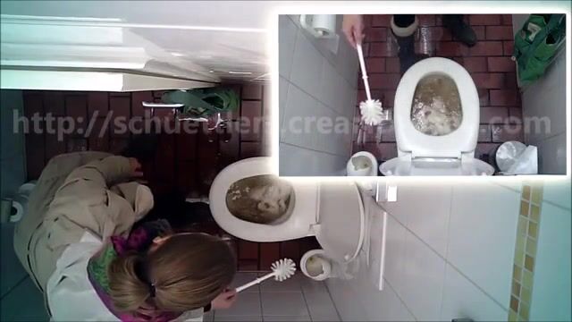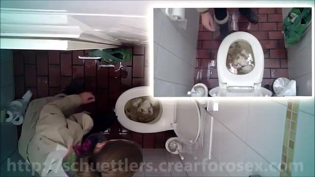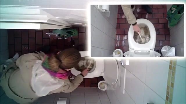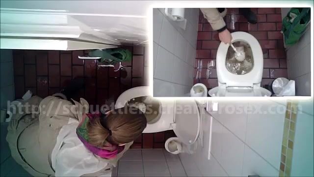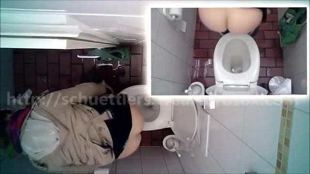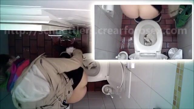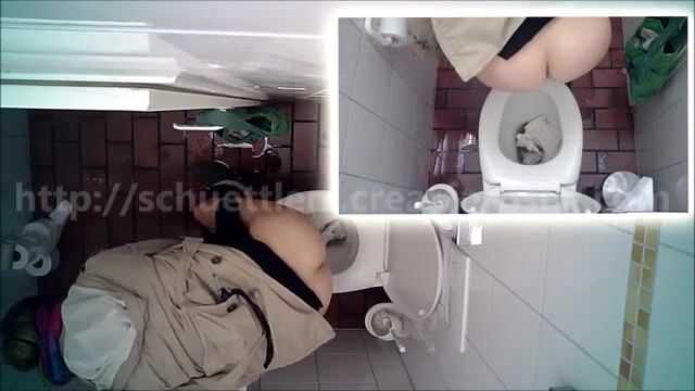 Woman pooping at public toilet at 1.55