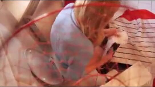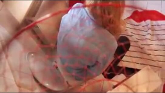 Masked girl shitting on the stool
