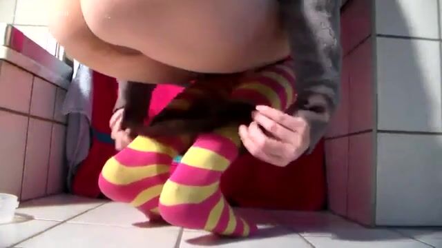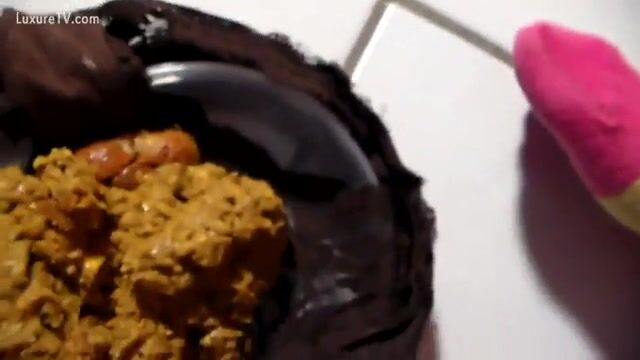Girl shitting big turd on the plate