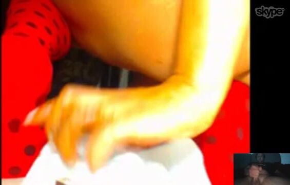 Masked girl shitting on the stool
