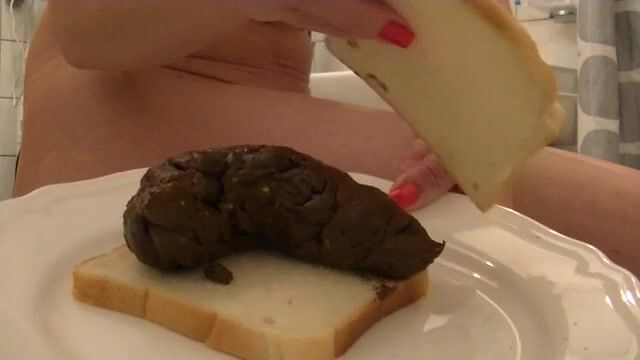 Female enjoys eating a mouthful of shit