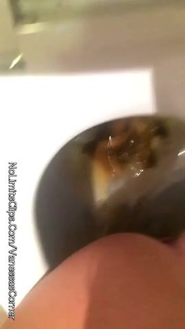 Girl shits into bowl