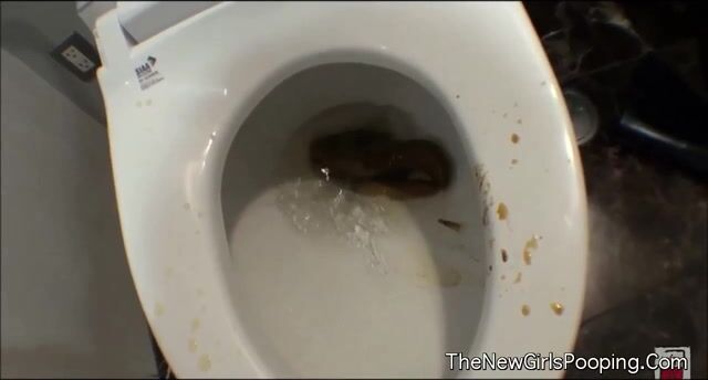 Girl open wide legs and shitting on the toilet floor
