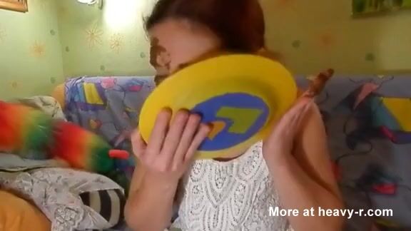 Short: Girl shiting on a blue plate