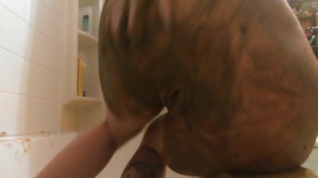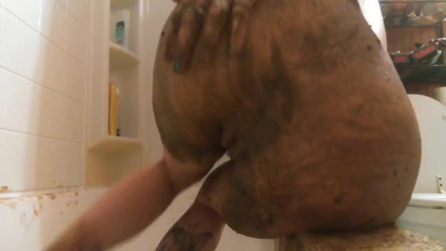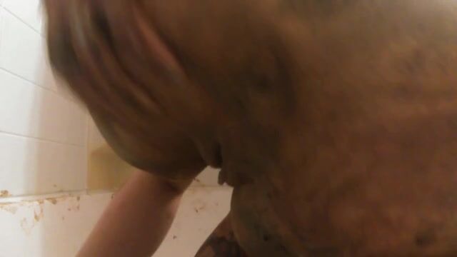 Chubby scat curious babe smears fresh shit all ove