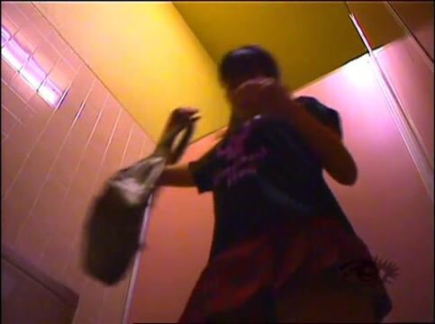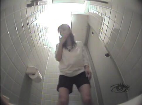 Masked girl shitting on the stool