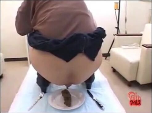 Hot girl shitting hard on plate