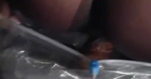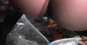 Black babe shitting in a bag outdoor