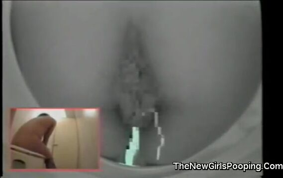 Lady poops in toilet