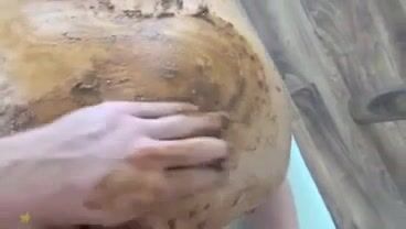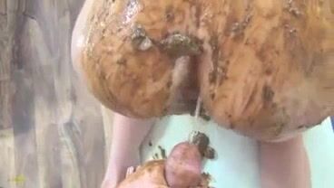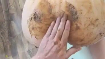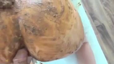 Girl shitting in the shower and smearing it on her butt