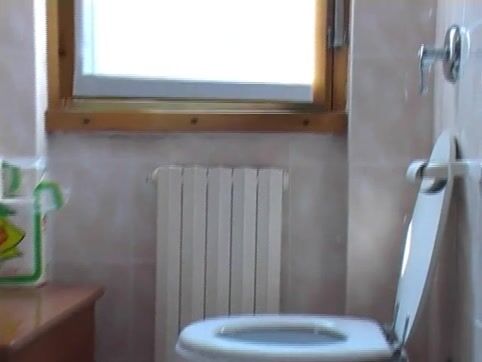 Girl open wide legs and shitting on the toilet floor