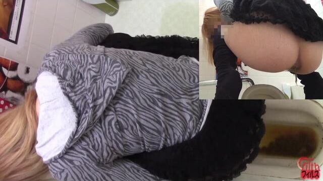Big boob Blonde Toilet Plops