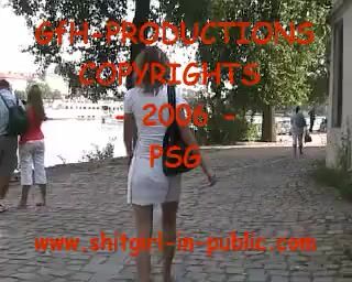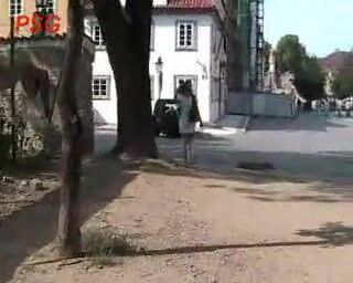 Public wood walking girl shits into panty and mast