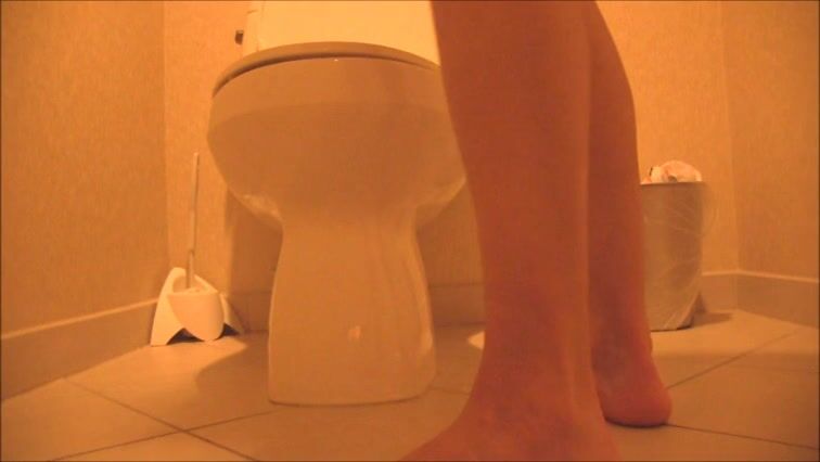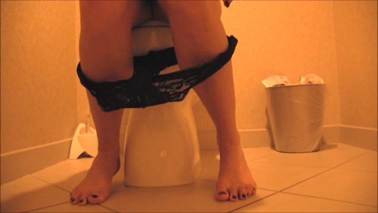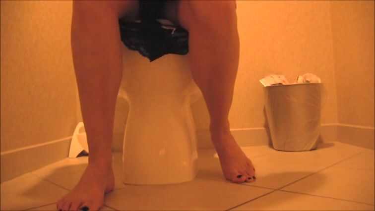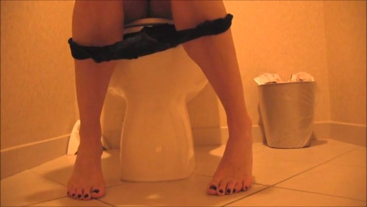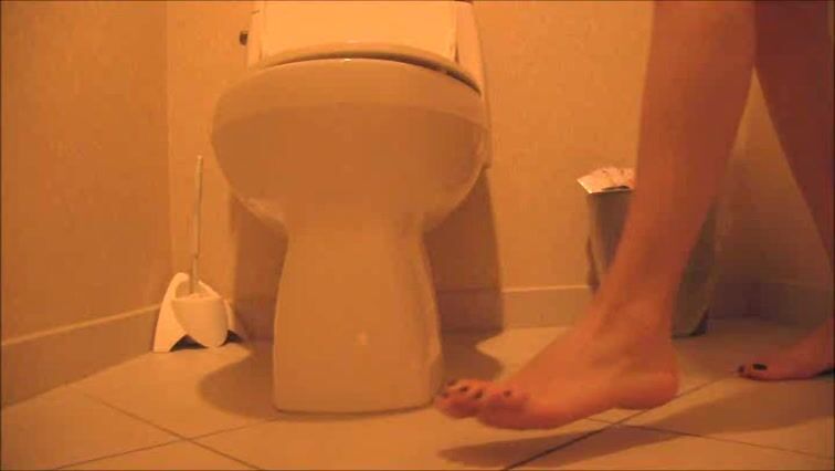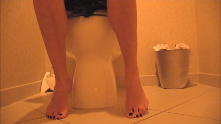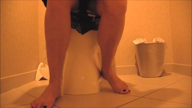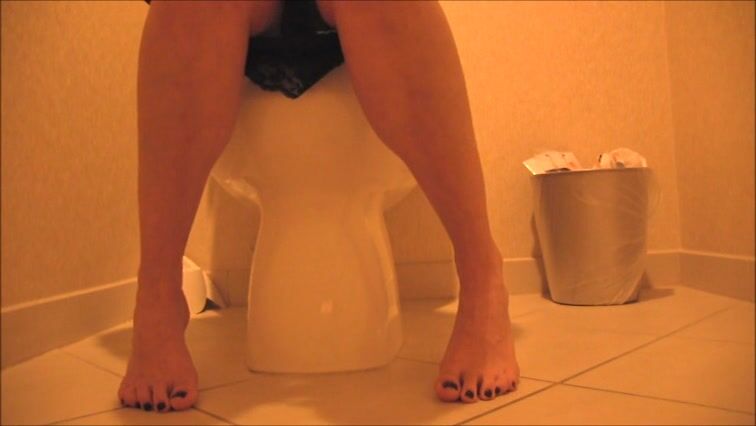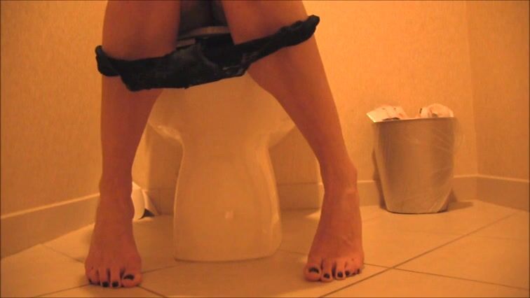 Sexy feet woman shitting hard in the toilet