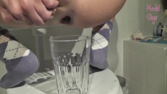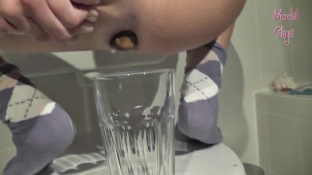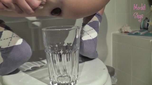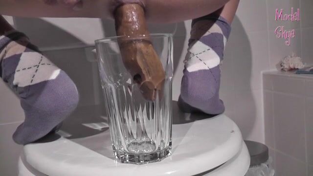Long turd shit into a glass
