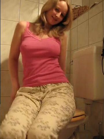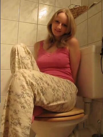 Blonde teen poops
