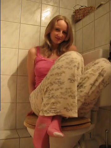 Sexy feet woman shitting hard in the toilet