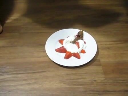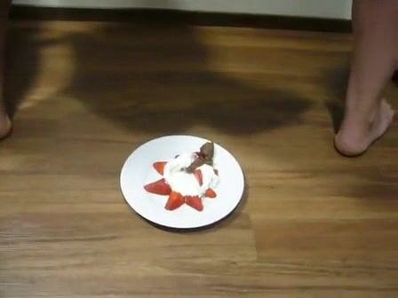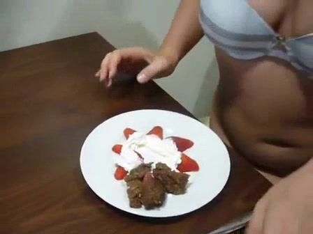 Dirty wife eating poop with strawberries