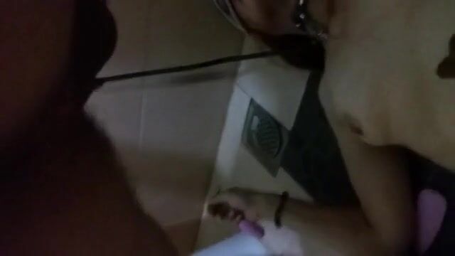 Chubby lady poops under the shower..