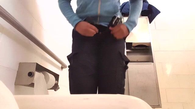 Ebony shitting and pissing over toilet