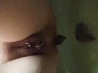 Woman on her side births huge turd.
