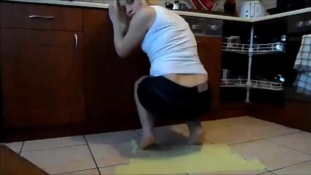 Dark skin ebony BBW Squats and Poops on Floor