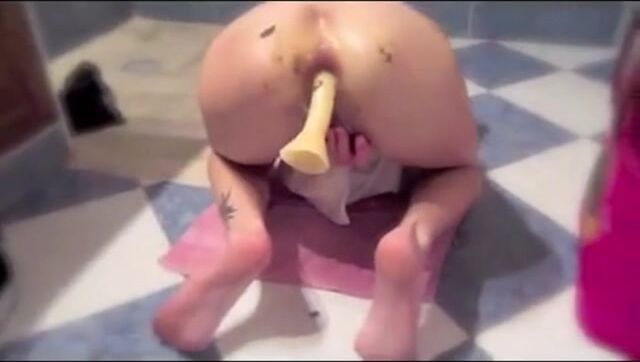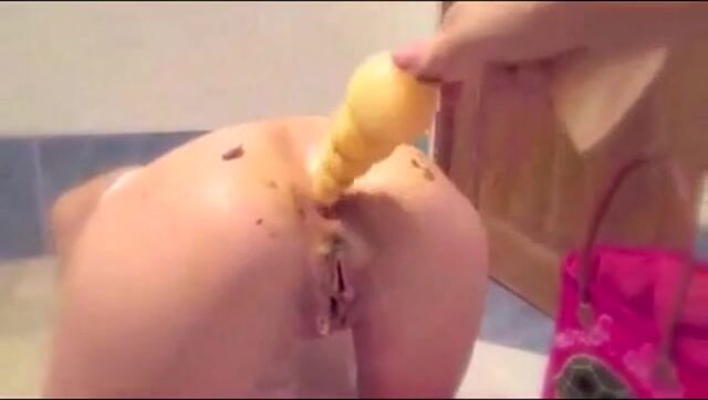 Huge anal dildo, scat and masturbation