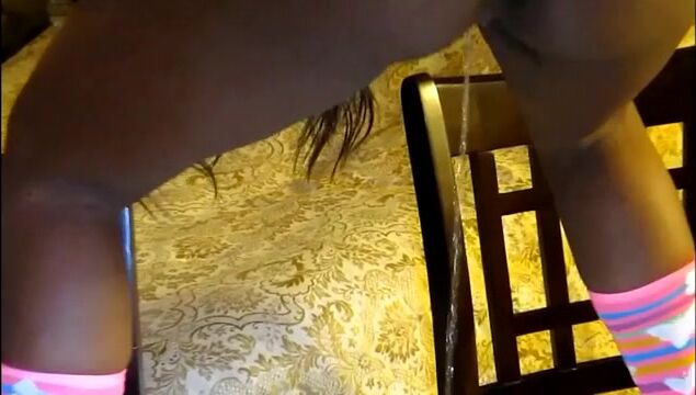 Beautiful Ebony pooping on two black chairsScat site pooping