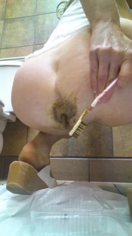 Toothbrush play and MASSIVE poo in white lingerie!