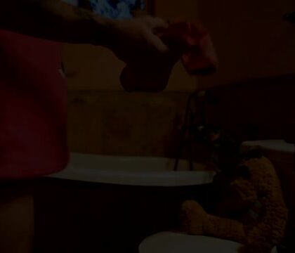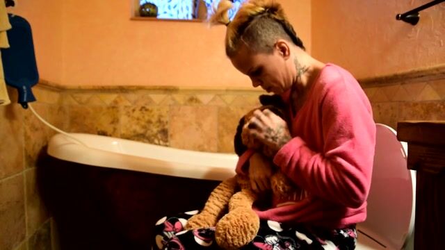 Teen pooping in bathroom