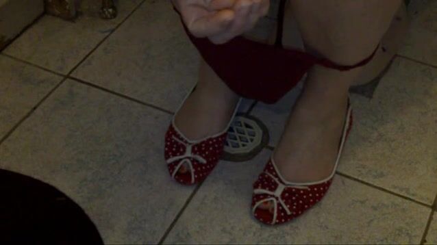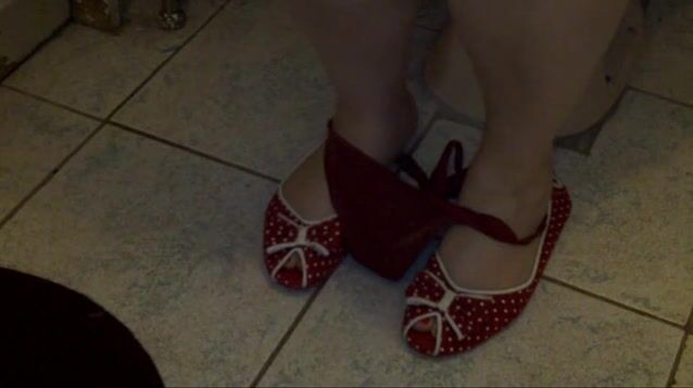 Brazilian in high heels gets on the table and shits