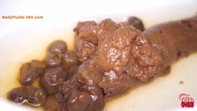 Woman shits in plate