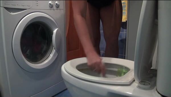 Tan beauty takes healthy shit and shows it being flushe