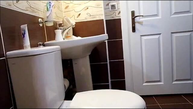 Brunette milf pissing and shitting
