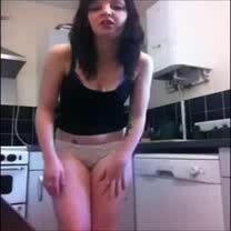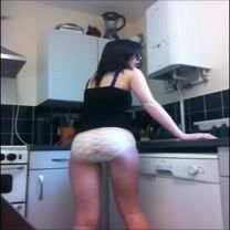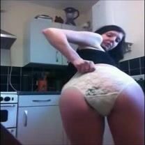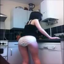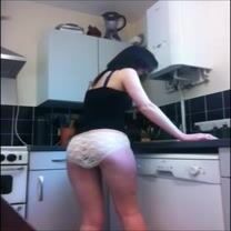 Amateur white knickers in the kitchen