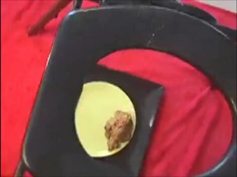 Girl shits into bowl