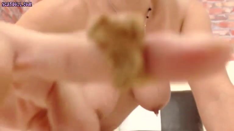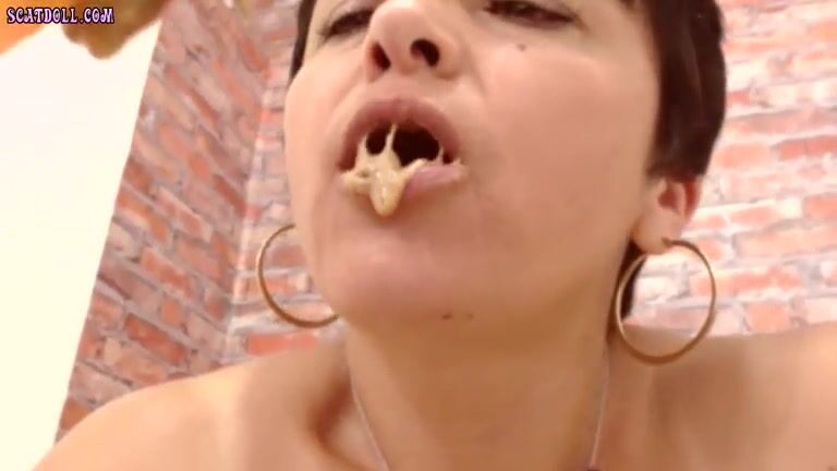 Smearing saved shit and fresh shit and stuffing it in