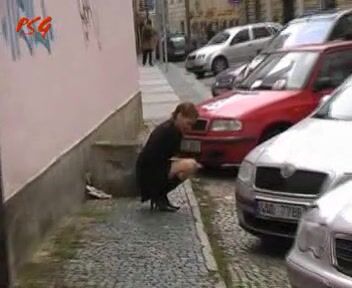 girl pooping in the pants in the street