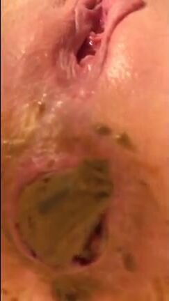 Gapes her ass and shits
