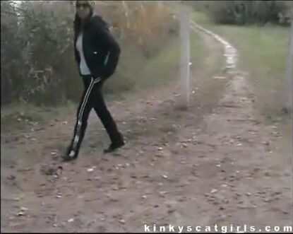 Amateur chick shitting on the road in the park - Scat Video Collection