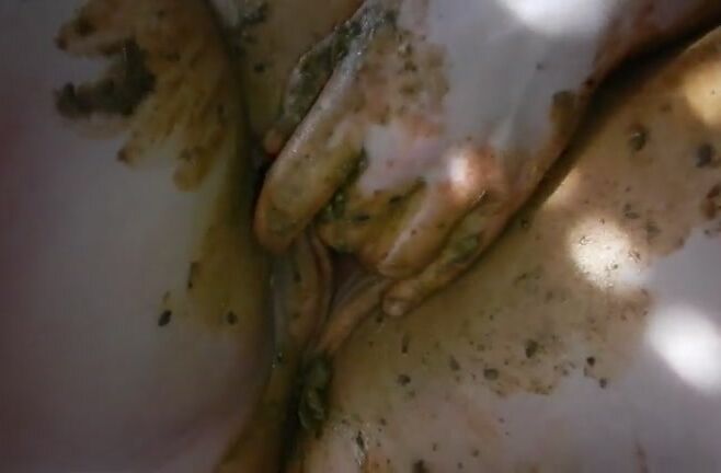 Asian girl tastes her shit