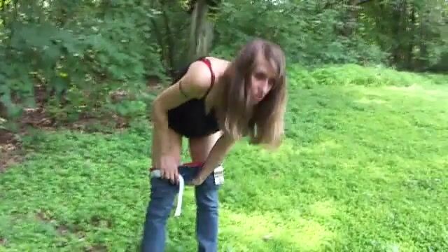 Hot woman shits in field