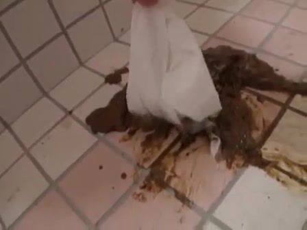 Girl open wide legs and shitting on the toilet floor
