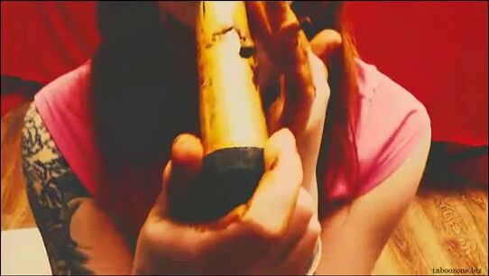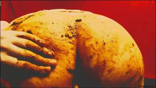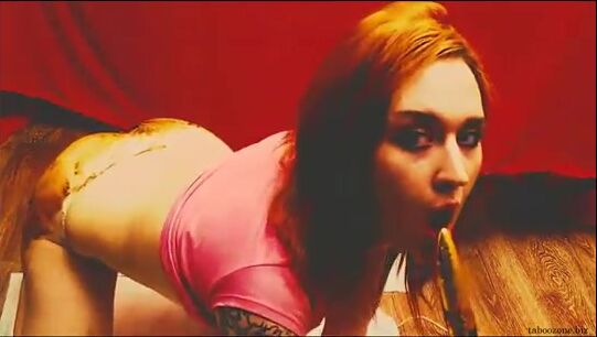 Girl smear herself full with shit and fucks her wet pussy
