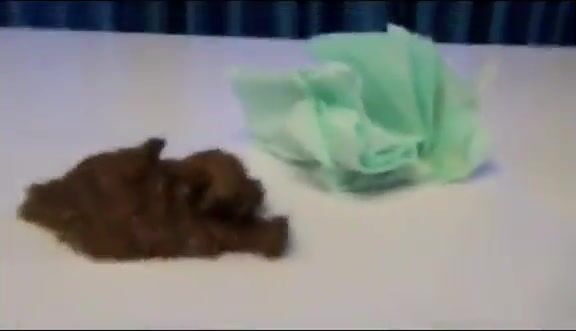 BEAUTY POOPS ON TABLE