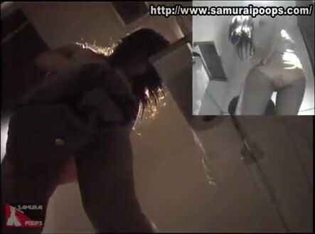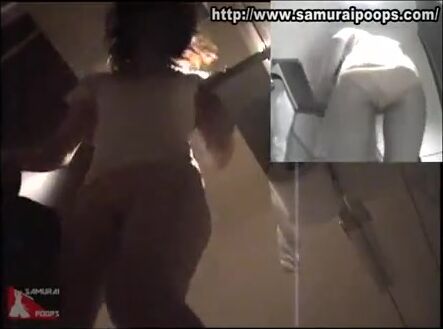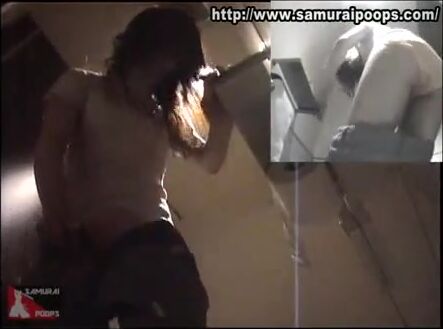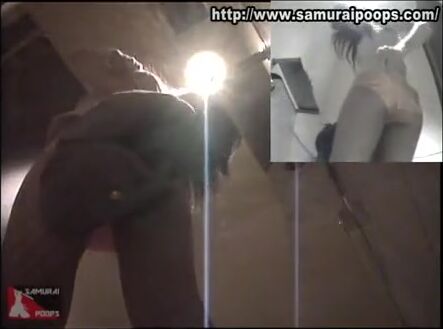 Woman pooping at public toilet at 1.55