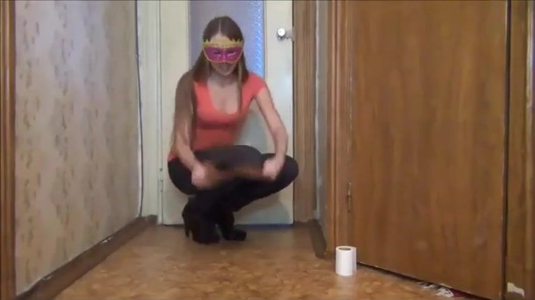 Russian girl pooping in the hallway