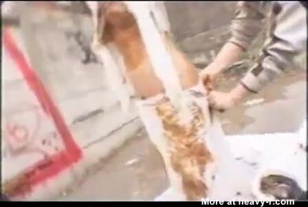 Girl shitting in the shower and smering it on body