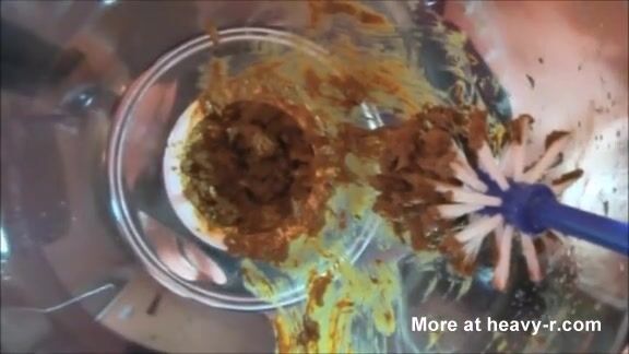Mature bbw shitting in a plastic box