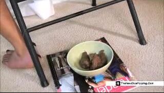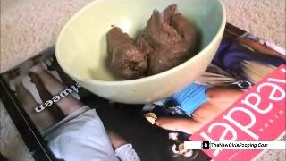 Girl shits into bowl